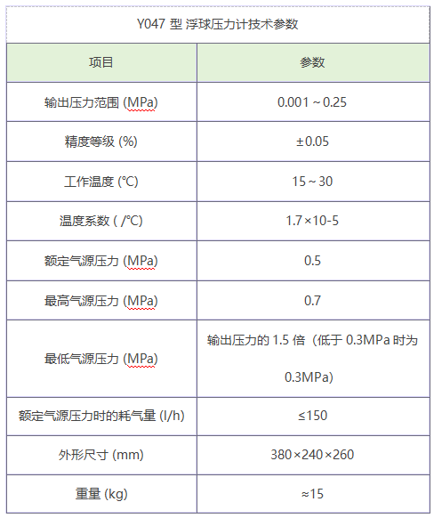 二、浮球壓力計(jì)技術(shù)參數(shù)