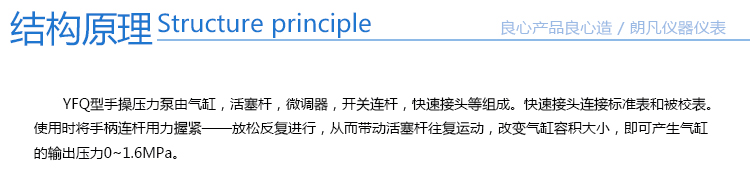 手操壓力泵是有手柄,活塞桿.透氣體,泵蓋,放油手把,微調(diào)手把,表接頭等組成.旋轉(zhuǎn)放油手把關(guān)閉放油閥,手握手操壓力泵手柄,用力握緊,放松反復(fù)進(jìn)行,從而帶動(dòng)活塞桿往復(fù)運(yùn)動(dòng),活塞桿往復(fù)運(yùn)動(dòng)幾次就可以產(chǎn)生輸出壓力0-60Mpa.
