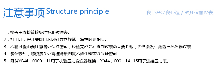 壓力泵使用前擰緊透氣體,充入適當(dāng)油液(如1/2變壓器油),然后在上緊透氣體,反復(fù)握緊,放松手柄,趕出油缸內(nèi)的氣體即可使用.校驗(yàn)過程中注意各類連接處保持密封,校驗(yàn)完后在拆卸儀表前要先旋轉(zhuǎn)放油手把打開放油閥,否則易損壞儀器儀表.