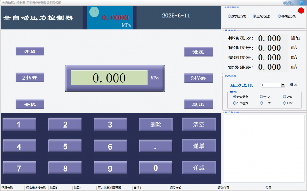 產品內置高精度壓力傳感器,能夠快速、精準地感知氣體壓力的細微變化,并將其轉換為電信號實時反饋至控制系統。控制系統采用先進的 PID 算法,依據傳感器反饋的數據,對氣體壓力進行智能、動態調節,確保輸出壓力能夠迅速、穩定地達到預設值。在科研實驗、工業檢測等對氣體壓力控制要求嚴苛的領域,本產品憑借其卓越的精準度與穩定性,能夠為各類氣體壓力相關的實驗與測試工作提供可靠保障,助力實現高效、精準的壓力控制目標。