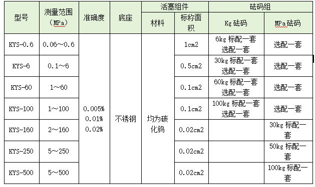 1、滿足JJG59-2022《液體活塞式壓力計檢定規程》和JJG99-2006 《砝碼》國家計量檢定規程;